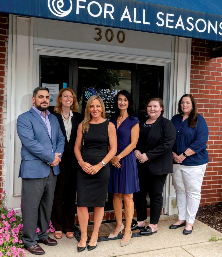 Caption: Pictured is the For All Seasons Executive Team. From left to right: William Cerrato, D.O., Chief Medical Officer; Katie Theeke, M.Ed., Chief Marketing and Communications Officer; Beth Anne Dorman, MS, President & CEO; Lesa Mulcahy, LCSW-C, Chief Clinical Officer; Lauren Kay Weber, MBA, Chief Strategy Officer; and Patti Cannon, MBA, Chief Operating Officer.