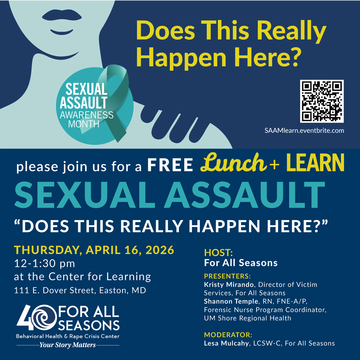 Join us for a FREE Lunch & Learn event in honor of Sexual Assault Awareness Month! Register Now.